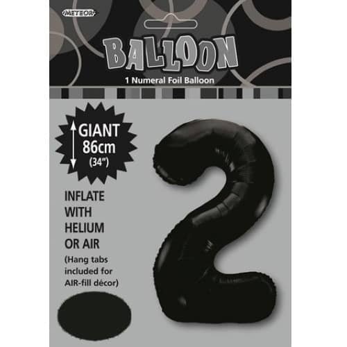 Black Number 2 Giant Numeral Foil Balloon 86CM (34")