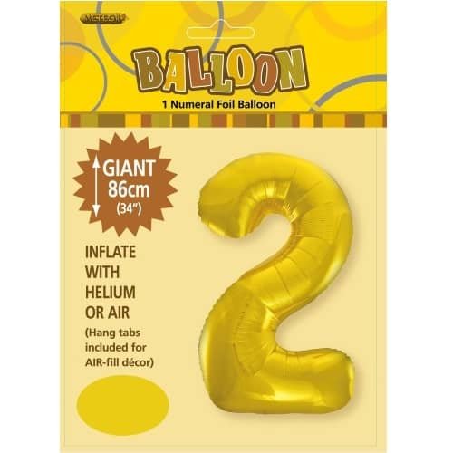 Gold Number 2 Giant Numeral Foil Balloon 86CM (34")