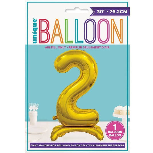 Gold "2" Giant Standing Numeral Foil Balloon 76cm (30") Air Filled Only