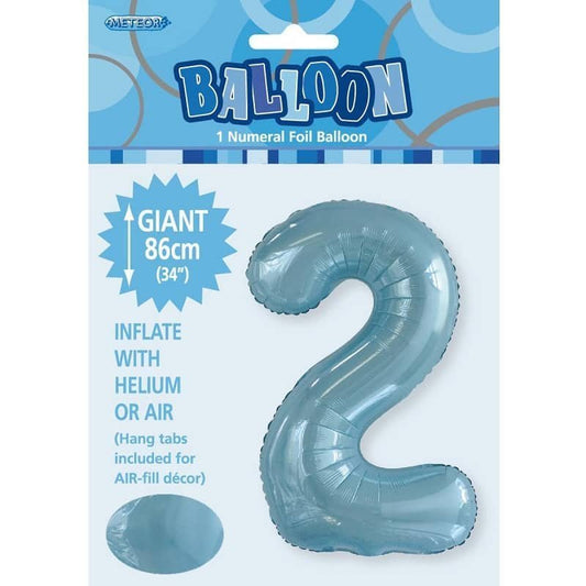Powder Blue Number 2 Giant Numeral Foil Balloon 86CM (34")