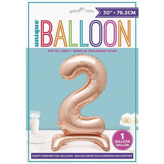 Rose Gold "2" Giant Standing Numeral Foil Balloon 76cm (30") Air Filled Only