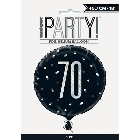 Black & Silver 70th Birthday Foil Prismatic Balloon 45CM (18")