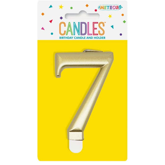Metallic Gold Numeral Candle "7" With Holder