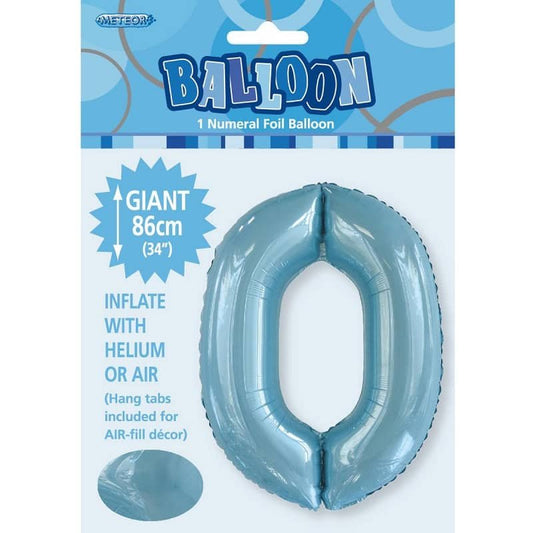 Powder Blue Number 0 Giant Numeral Foil Balloon 86CM (34")