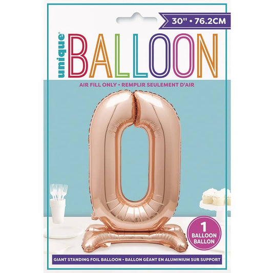 Rose Gold "0" Giant Standing Numeral Foil Balloon 76cm (30") Air Filled Only