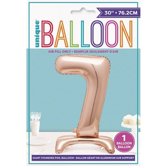 Rose Gold "7" Giant Standing Numeral Foil Balloon 76cm (30") Air Filled Only