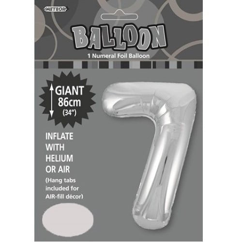 Silver Number 7 Giant Numeral Foil Balloon 86CM (34")