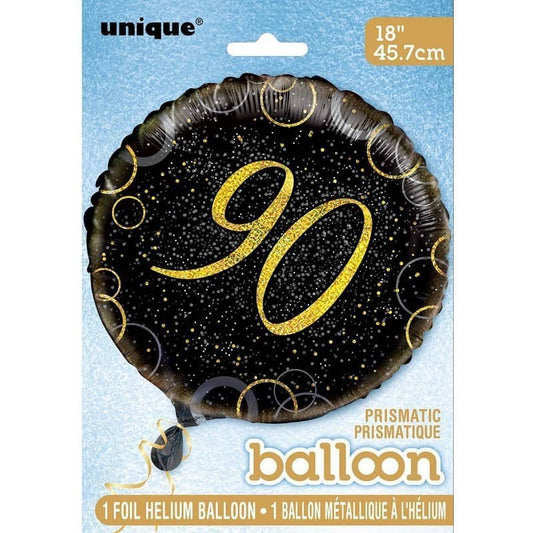 Glitz Black & Gold 90th Birthday "90" Foil Balloon 45cm (18")