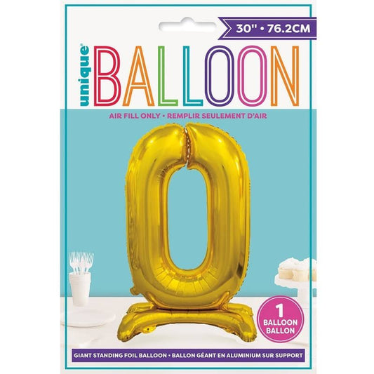 Gold "0" Giant Standing Numeral Foil Balloon 76cm (30") Air Filled Only