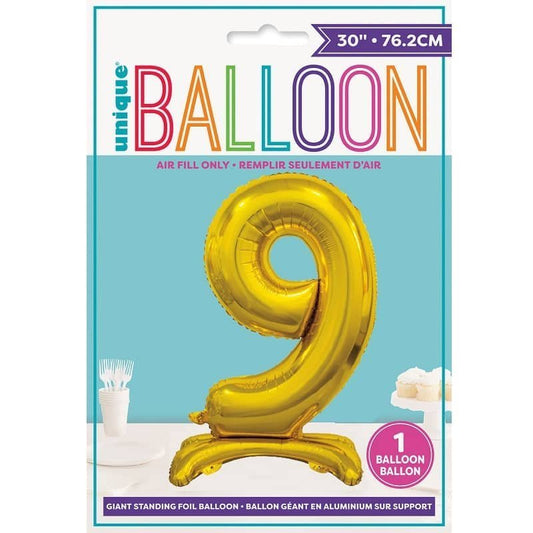 Gold "9" Giant Standing Numeral Foil Balloon 76cm (30") Air Filled Only