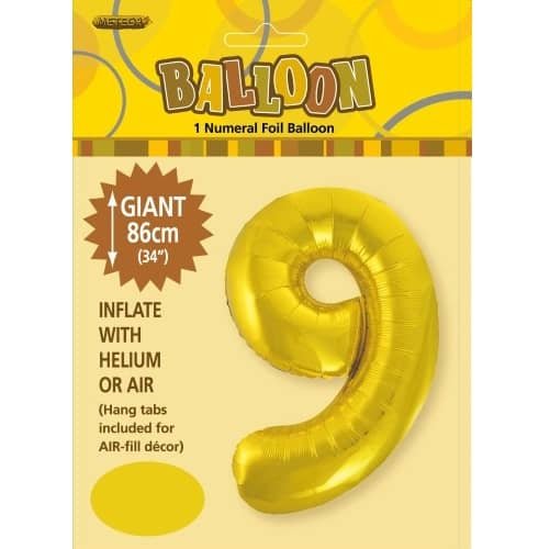 Gold Number 9 Giant Numeral Foil Balloon 86CM (34")