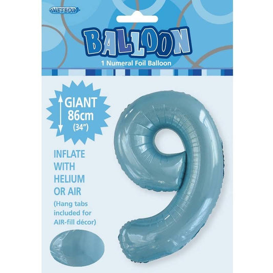 Powder Blue Number 9 Giant Numeral Foil Balloon 86CM (34")