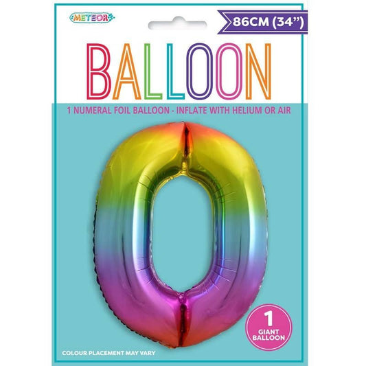 Rainbow Number 0 Giant Numeral Foil Balloon 86CM (34")
