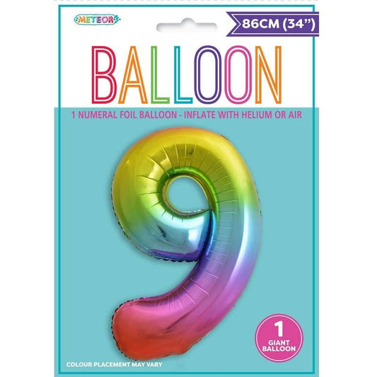 Rainbow Number 9 Giant Numeral Foil Balloon 86CM (34")