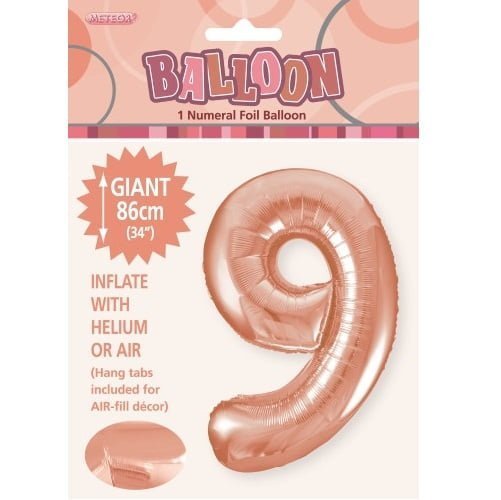 Rose Gold Number 9 Giant Numeral Foil Balloon 86CM (34")