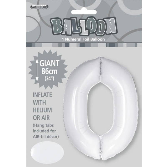 White Number 0 Giant Numeral Foil Balloon 86CM (34")