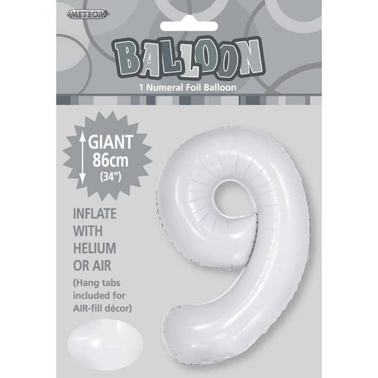 White Number 9 Giant Numeral Foil Balloon 86CM (34")