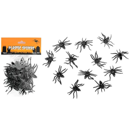 12 Fake Plastic Spiders 6.5cm Halloween Decorations