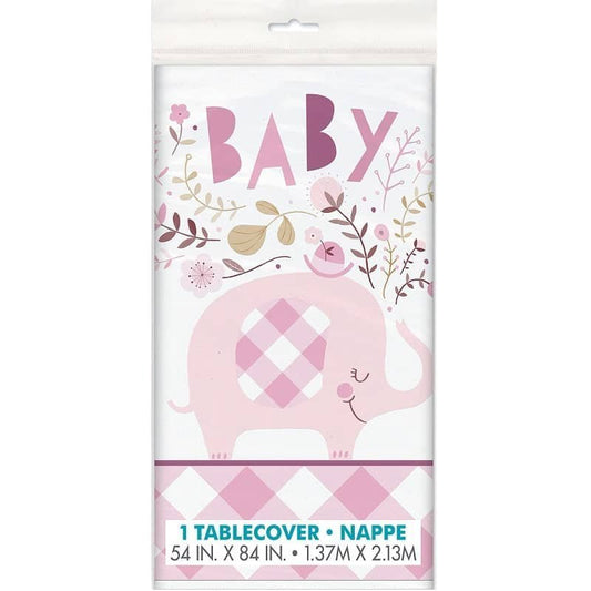 Umbrellaphants Baby Shower Pink Plastic Table Cover 137cm x 213cm