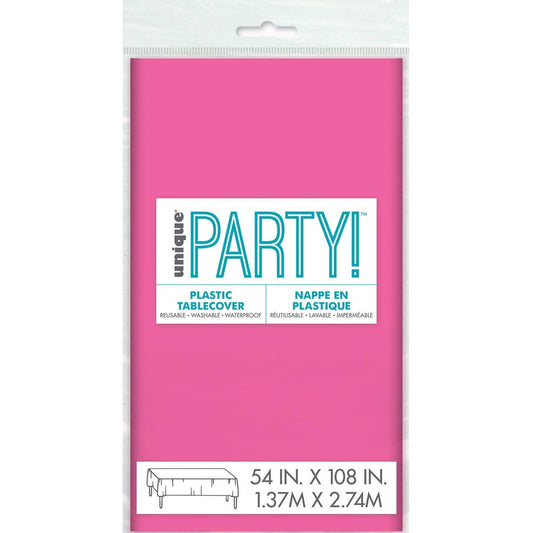 Hot Pink Rectangle Solid Colour Plastic Table Cover 137cm x 274cm