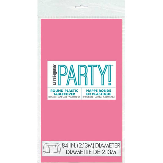 Hot Pink Solid Colour Round Plastic Table Cover 213cm (84")