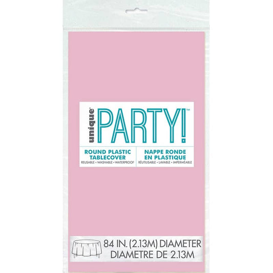 Lovely Pink Solid Colour Round Plastic Table Cover 213cm (84")