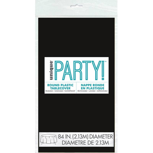 Black Solid Colour Round Plastic Table Cover 213cm (84")