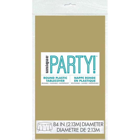Gold Solid Colour Round Plastic Table Cover 213cm (84")