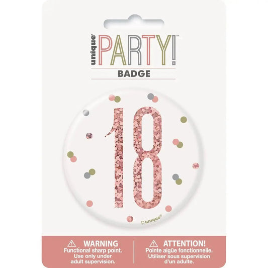 Glitz Rose Gold Birthday Badge 7.6cm (3") - 18th
