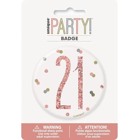 Glitz Rose Gold Birthday Badge 7.6cm (3") - 21st