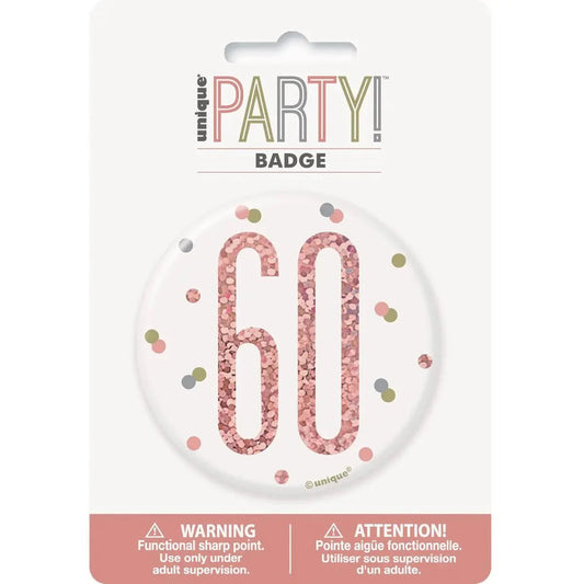 Glitz Rose Gold Birthday Badge 7.6cm (3") - 60th