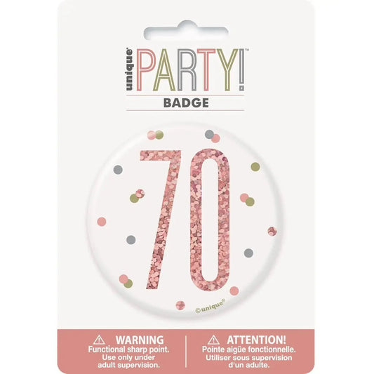 Glitz Rose Gold Birthday Badge 7.6cm (3") - 70th