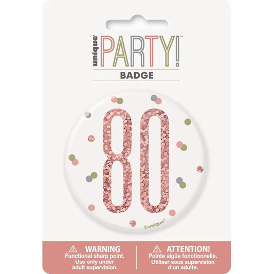 Glitz Rose Gold Birthday Badge 7.6cm (3") - 80th