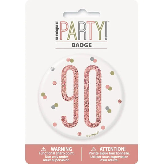 Glitz Rose Gold Birthday Badge 7.6cm (3") - 90th