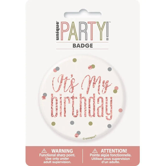 Glitz Rose Gold Birthday Badge 7.6cm (3") - It's My Birthday