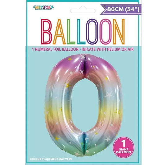 Pastel Rainbow Number 0 Giant Numeral Foil Balloon 86cm (34")