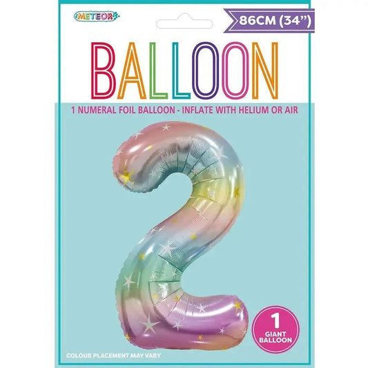 Pastel Rainbow Number 2 Giant Numeral Foil Balloon 86cm (34")
