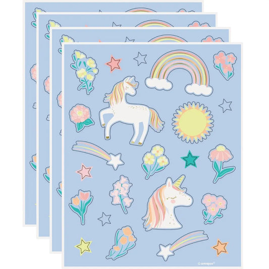 Dainty Unicorn Sticker Sheets 92pk (4 Sheets) Party Favours