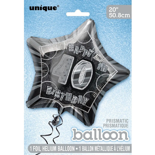 Glitz Black & Silver 40th Birthday Star Foil Balloon 50cm (20")