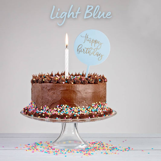 Light Blue & Gold Happy Birthday Round Cake Topper