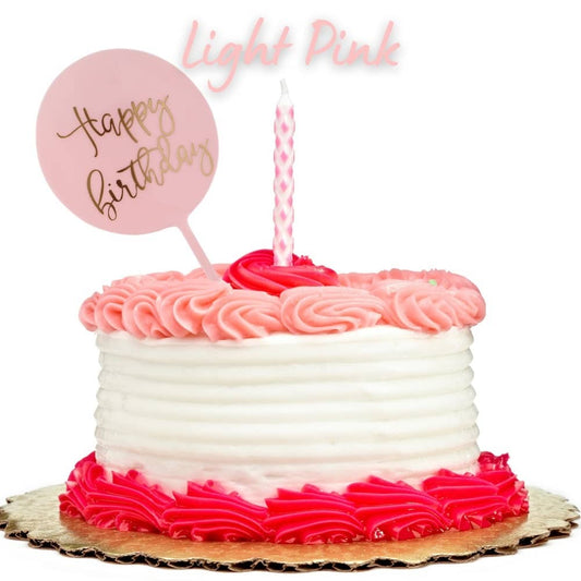 Light Pink & Gold Happy Birthday Round Cake Topper