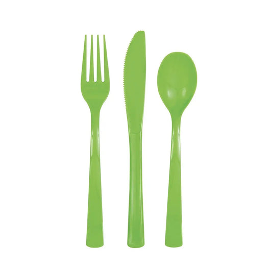 Lime Green Solid Colour Plastic Assorted Cutlery 18pk Reusable