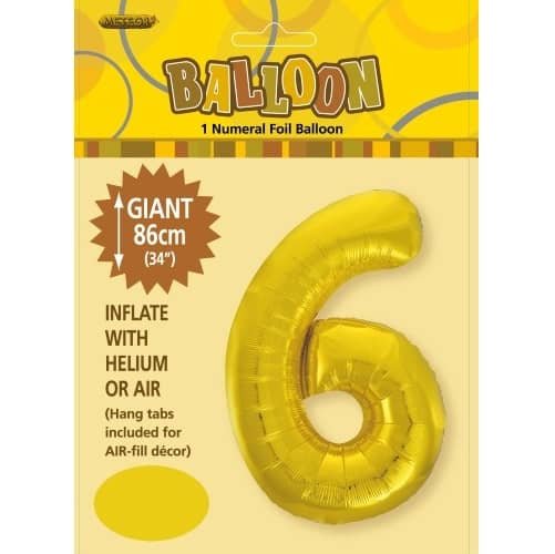 Gold Number 6 Giant Numeral Foil Balloon 86CM (34")