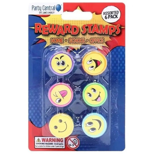 Fun Reward Stamps 6pk Smiley Face Toys Party Favours