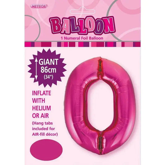Hot Pink Number "0" Giant Numeral Foil Balloon 86cm (34")