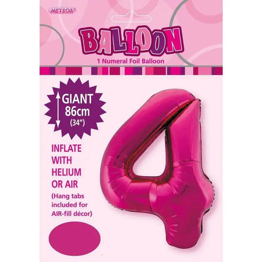 Hot Pink Number "4" Giant Numeral Foil Balloon 86cm (34")