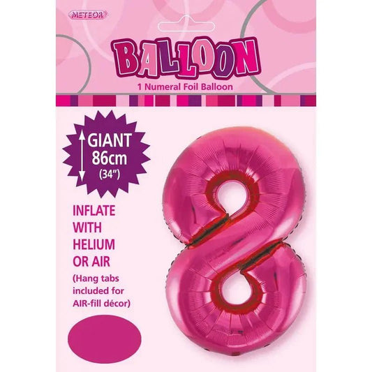 Hot Pink Number "8" Giant Numeral Foil Balloon 86cm (34")