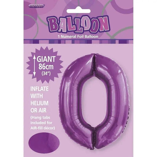 Pretty Purple Number "0" Giant Numeral Foil Balloon 86cm (34")