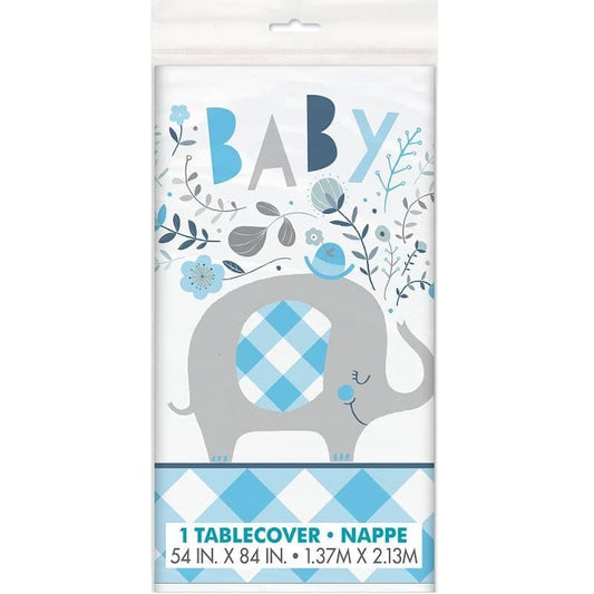 Floral Elephants Baby Shower Blue Table Cover Tablecloth 137cm x 213cm (54" x 84")