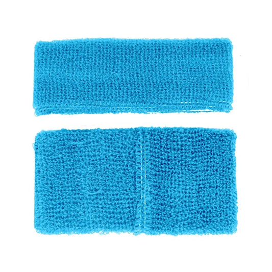 Light Blue 80's Cotton Wristbands Headband Sweatbands Set
